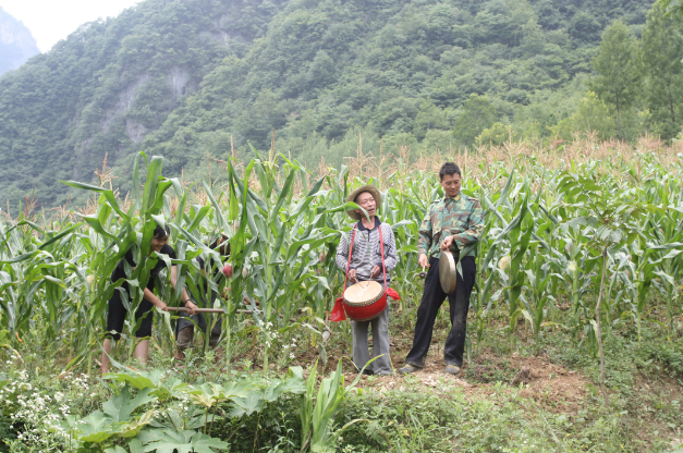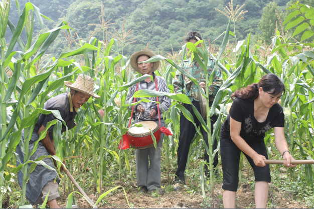 鎮(zhèn)坪薅草鑼鼓是流行在鎮(zhèn)坪的一種與勞動(dòng)生產(chǎn)相結(jié)合的特殊歌唱形式,一群人在地里鋤草,兩人在地頭敲鑼打鼓唱山歌,以解除勞動(dòng)疲乏。薅草鑼鼓起源于3000多年前的巴人時(shí)期。那時(shí)的人們從漁獵轉(zhuǎn)為農(nóng)耕,為驅(qū)趕野獸、祭祀山神而擊鼓鳴鑼吆喝,后演變成一種勞動(dòng)山歌。明代《三才會(huì)圖》一書中記載:“薅田有鑼鼓,其聲促烈清壯,有緩急抑揚(yáng)。”《宣漢縣志》記載:“土民自古有‘薅草鑼鼓’之習(xí)。夏日耘草,數(shù)家趨一家,彼此輪轉(zhuǎn),以次周而耘之,往往集數(shù)十人,其中二人擊鼓鳴鉦,迭應(yīng)相和,耘者勞而忘疲,其功較倍。”