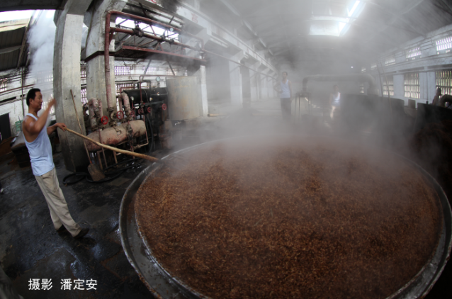 瀘康酒發(fā)酵劑的制作工藝依次經(jīng)過配料、原料粉碎、水分、制曲、培養(yǎng)溫度控制、翻曲、收堆等七個(gè)流程。大曲原酒的生產(chǎn)中原輔料加工工藝復(fù)雜。首先,需要以黃泥老窖保證窖泥富集廣泛的乙酸菌,為原酒酒質(zhì)提供重要的香味物質(zhì)。其次,需要進(jìn)行一系列原輔料的選擇和加工:1. 原料高粱:?jiǎn)芜x紅皮高粱,利用高粱紅皮的單寧,在發(fā)酵過程中經(jīng)過各種有機(jī)酸作用,產(chǎn)生出多種微量香味物質(zhì),給酒增添特殊的芳香;2. 輔料谷殼:谷殼是釀制大曲酒的主要輔料,是良好的疏松劑和填充劑,并賦予酒體特殊的醇度和芳香,質(zhì)量要求新鮮、干燥、無霉?fàn)€,呈金黃色;3. 輔料母糟:母糟是經(jīng)過成年累月積累起來的,故有“萬年糟”之稱,起調(diào)節(jié)糧糟酸度和調(diào)節(jié)糧糟中淀粉含量的作用;4. 輔料釀造用水:水在白酒生產(chǎn)中起著至關(guān)重要的作用。瀘康酒釀造要自備井,采用65米的深井水。它無污染、無色,具有清爽、微甜、適口的特點(diǎn),其化學(xué)成分、總硬度、堿度、PH值、細(xì)菌總數(shù)、大腸菌群等指標(biāo)均達(dá)到我國生活用水標(biāo)準(zhǔn)。