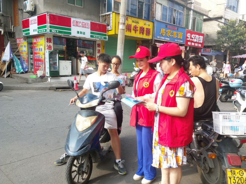 2018年1月至12月期間,安康市群藝館的職工每個月都會在解放路十字或鼓樓小學十字路口認真開展交通文明勸導活動。文化志愿者們身穿紅馬甲,頭戴小紅帽一邊引導行人、非機動車各行其道,勸導車輛行人遵守交通秩序,不闖紅燈,一邊幫助交警維護交通秩序,通過該活動共發(fā)放城市創(chuàng)建宣傳單1萬余份。