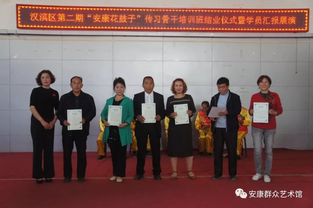 本次培訓為期一月時間,由“安康花鼓子”省級代表性傳承人李龍茂指導、區(qū)級代表性傳承人李甲斌授課,授課內(nèi)容主要是安康花鼓子的文化背景、演唱技巧。結業(yè)儀式暨學員匯報展演于4月21日下午在漢濱區(qū)文化館舉行,本次培訓經(jīng)考核,共30名學員獲得結業(yè)證書。
