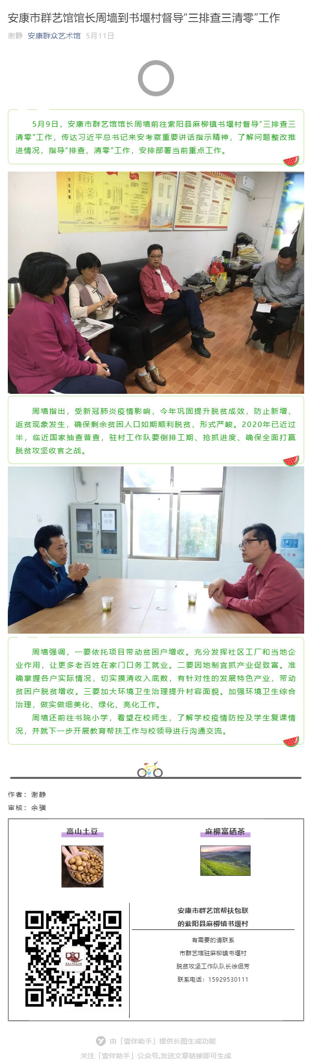 安康市群藝館館長周墻到書堰村督導“三排查三清零”工作