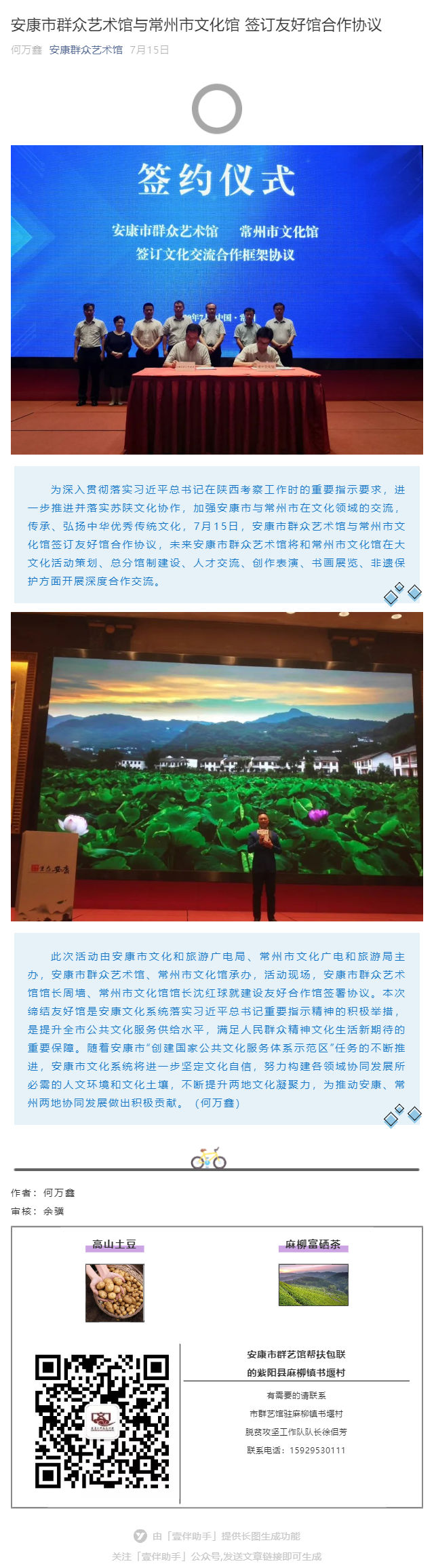 安康市群眾藝術(shù)館與常州市文化館 簽訂友好館合作協(xié)議