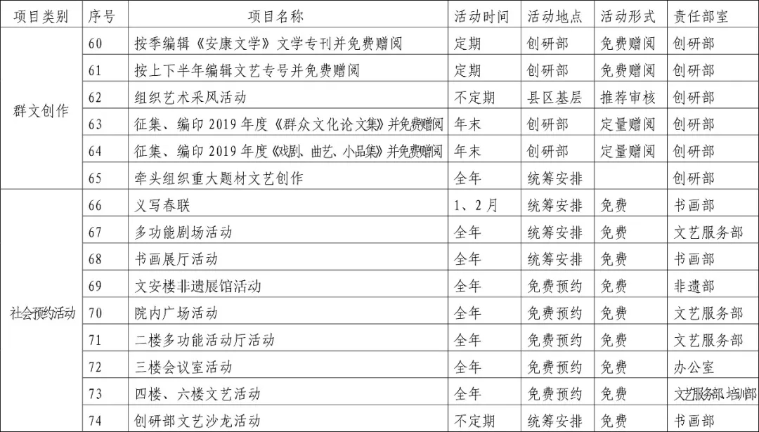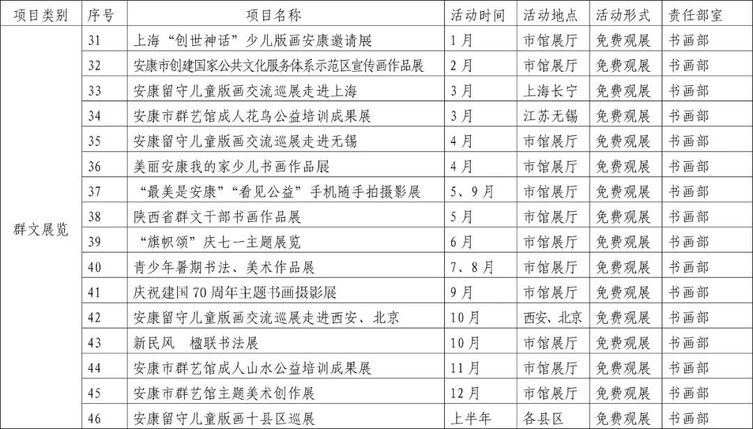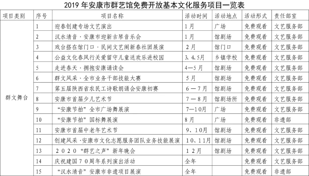 2019年安康市群藝館免費(fèi)開放基本文化服務(wù)項目一覽表